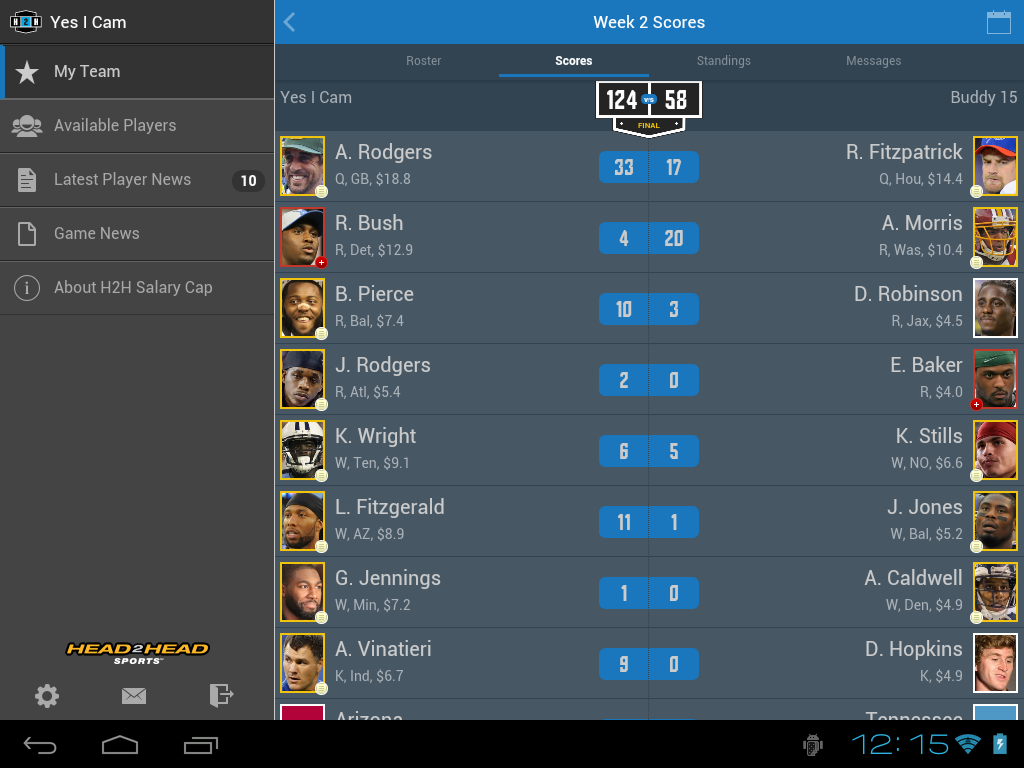 Salary Cap Fantasy Football - Head2Head Sports